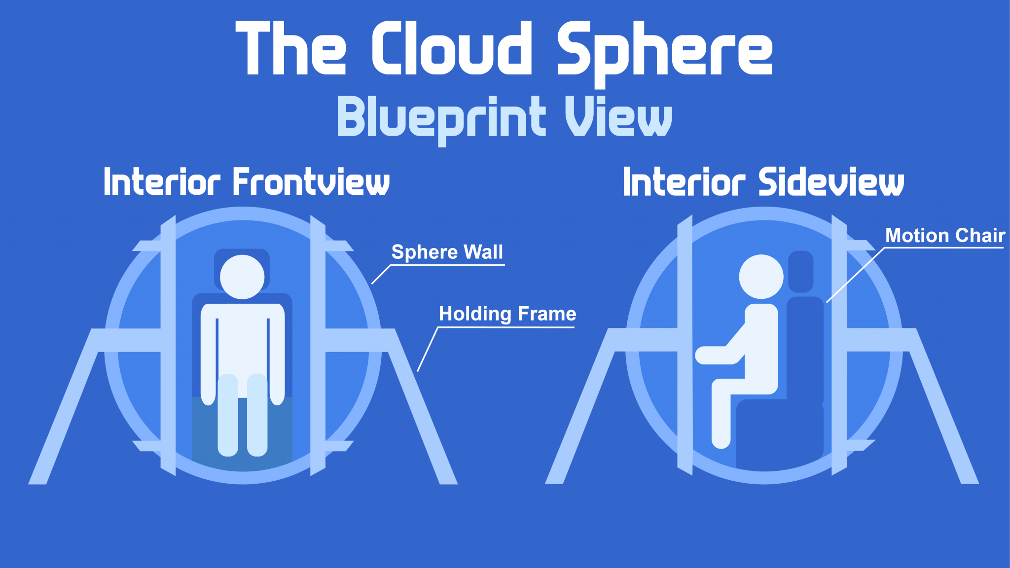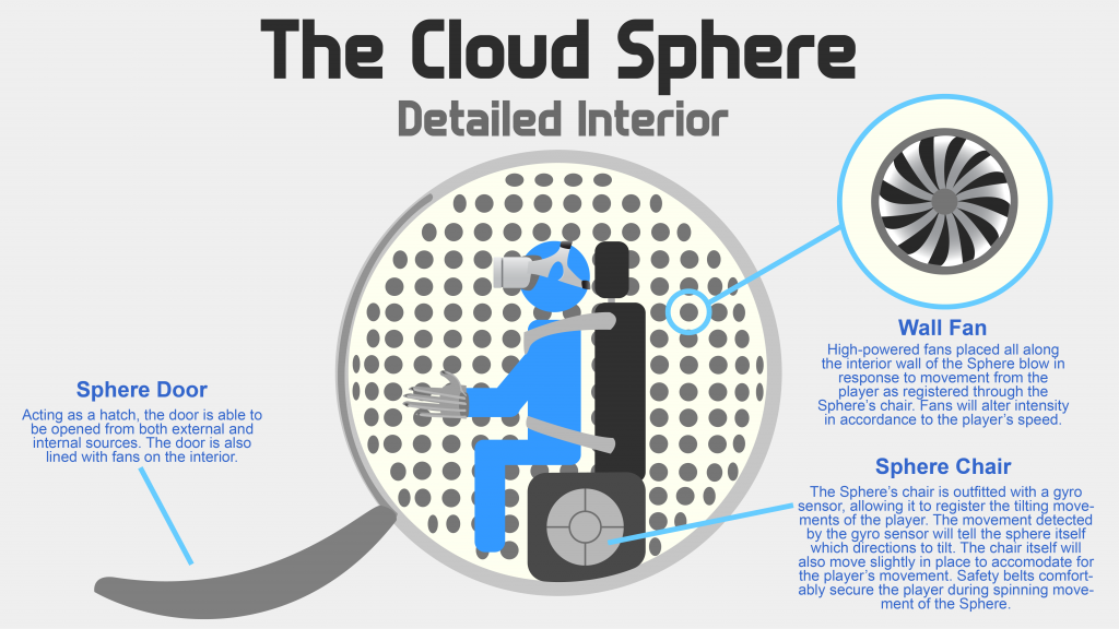 These images were created for a class project in which our team had to create a made-up video game device to better immerse the player in the game. My team came up with the idea of a VR sphere device which allowed a person to rotate around a small environment with miniature blowing fans to simulate floating in air. I drew up images of the devices proposed for this VR device.