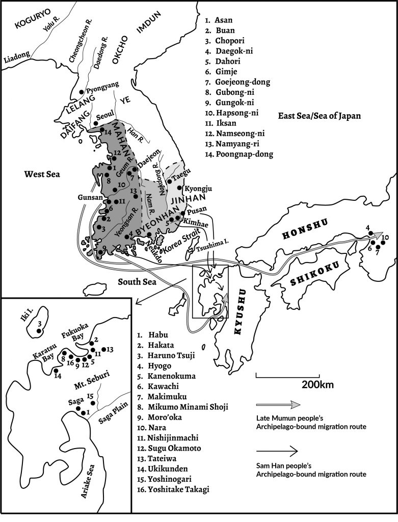 Through collaboration with my grandfather, I created numerous maps for his published book Archaeology and History of Toraijin. This book details the ancient history of Korean culture’s influence on the Japanese islands and required several maps outlining areas and routes of interest. Consulting my grandfather’s drafts and other maps of the Korean Peninsula, I created several different maps of varying detail and location to demonstrate many concepts described within the book.