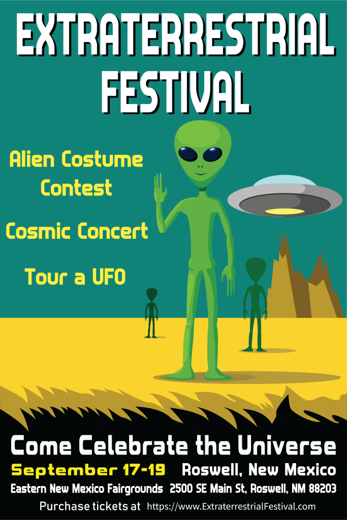 This is a poster advertising a made-up festival that celebrates extraterrestrials and all things alien. This poster was also made so that it could be animated into a motion poster.
